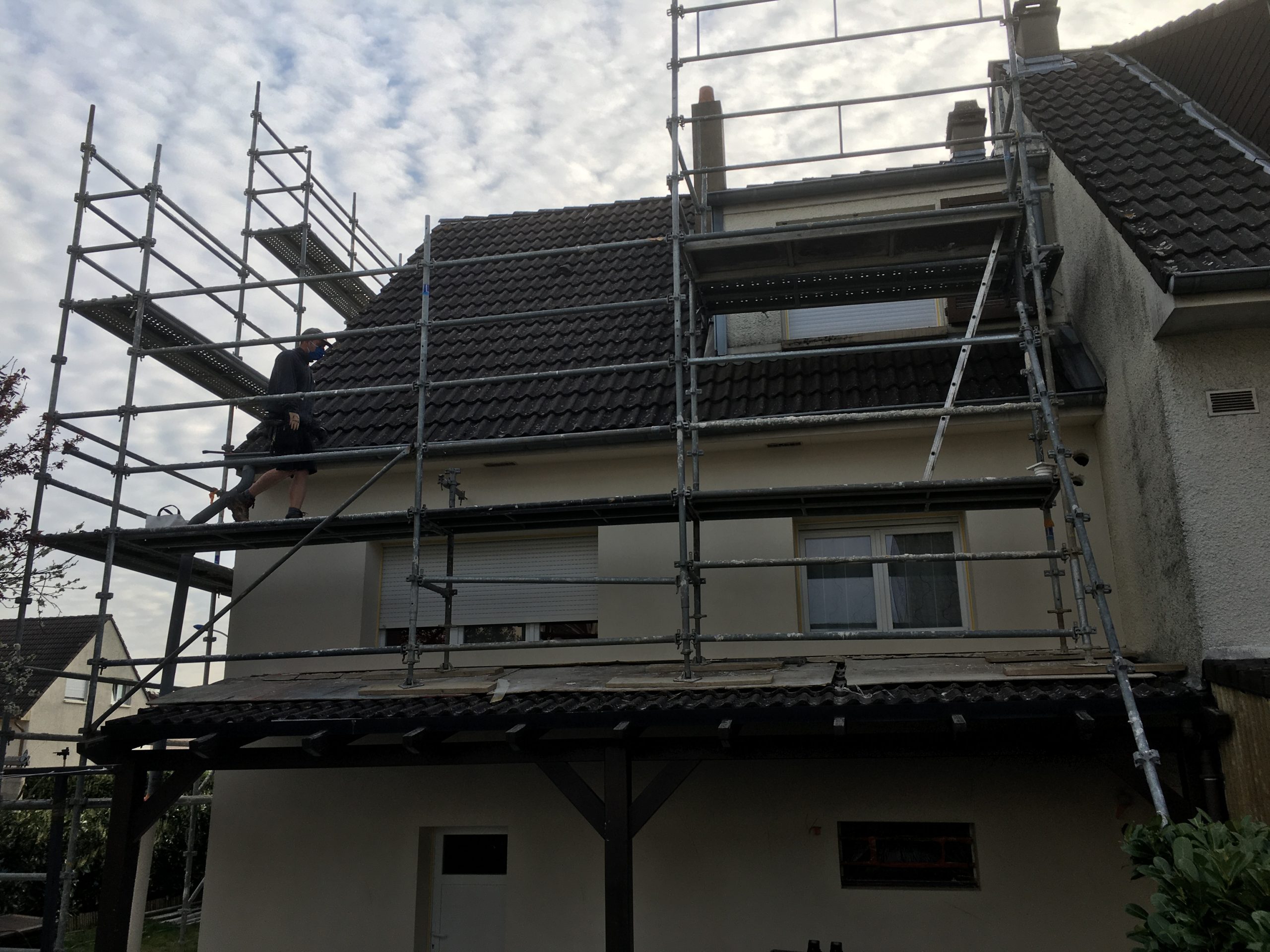 Réfection de toiture avec la tuile plate HP10 ardoise de chez Imerys d’une surface de 100 m2 ainsi que l’isolation des rampants de toiture permettant l’obtention des aides à la rénovation énregétique (laine de verre entre chevrons et isolant mince SKYTECH Pro sur les chevrons permettant d’atteindre un coefficient de résistance thermique (R) de 6,10M2,K/W)