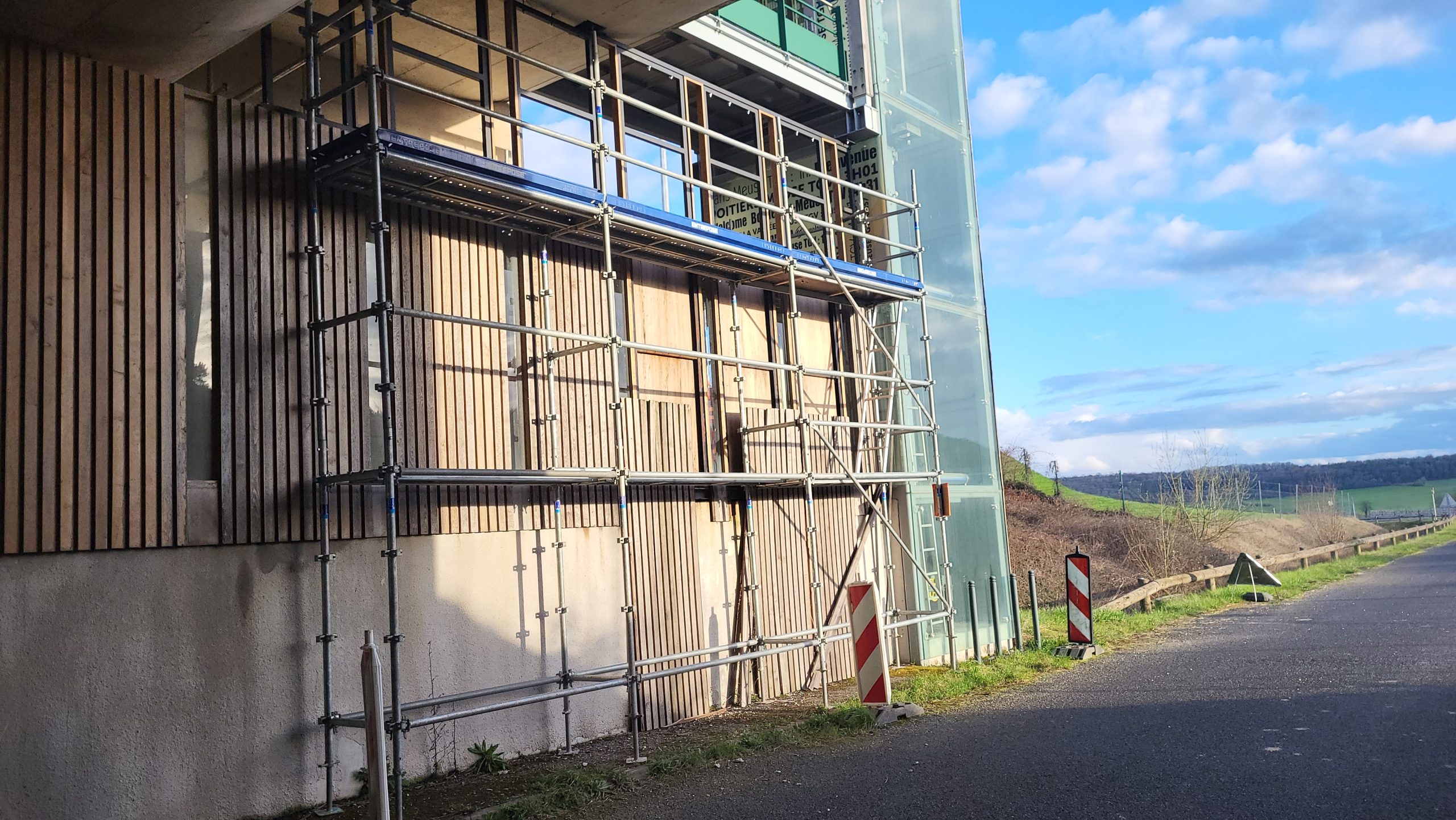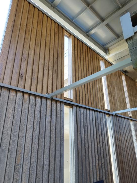 – Réhausse du bardage existant avec structure en tube métallique et bardage en chêne