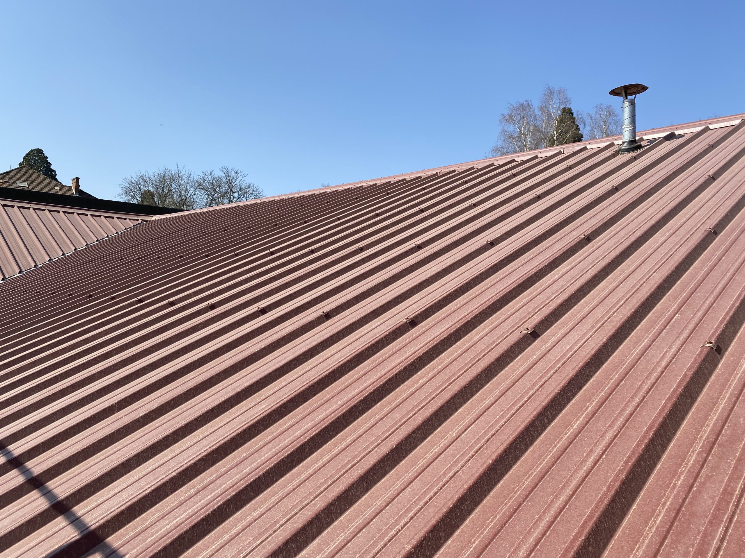 Réfection d’une couverture en bac sec d’une surface totale 825 M2, réfection d’un bardage en bac sec 85 M2, révision de couverture en tuiles terre cuite 200 M2 comprenant 50% de remplacement, remplacement des EP gouttières 170 m – descentes 61 m, refection des zingueries (Noues) 40 m, réalisation des habillages de chemeinées en zinc 5 U