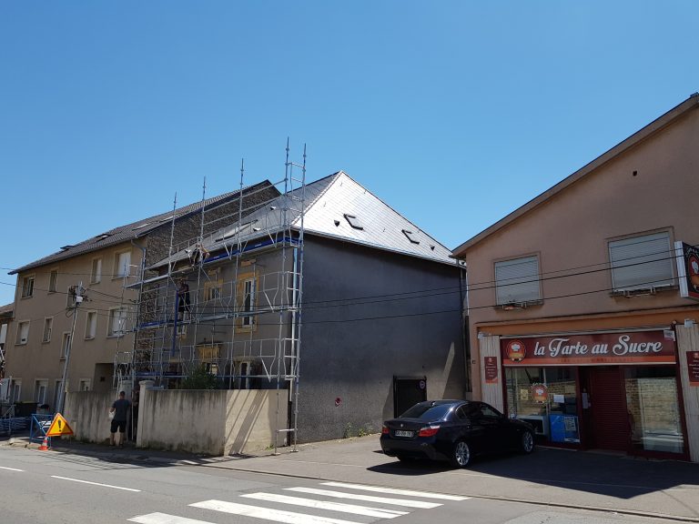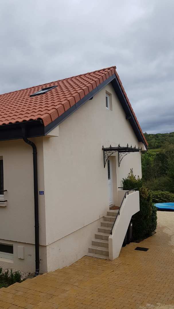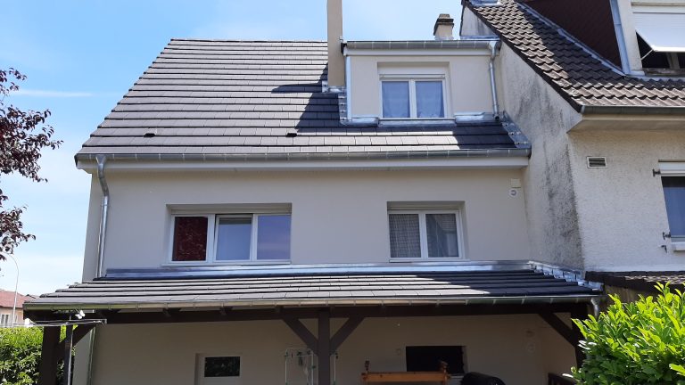 Réfection d'une toiture en ardoises fibrociment carrées pose losange sur une toiture 4 pans de 160m2, y compris le remplacement des fenêtres de toit Velux et de l'ensemble de la zinguerie (gouttières, descentes EP)...